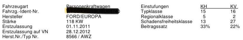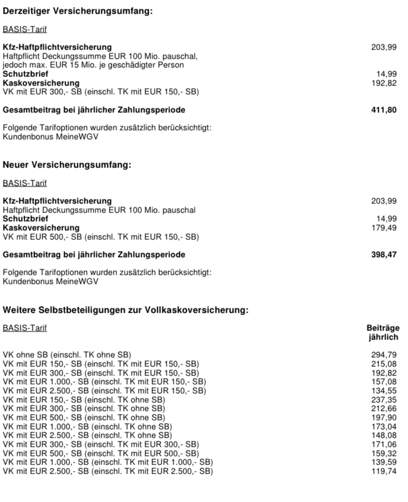 Bei mir macht es über HUK dann 638,09 € jährlich, davon 444,47 € Teilkasko bei 150 € Eigentanteil, ohne Werkstattbindung mit SF34 (18% Beitragssatz), keine Farher unter 25, 12tkm Fahrleistung.