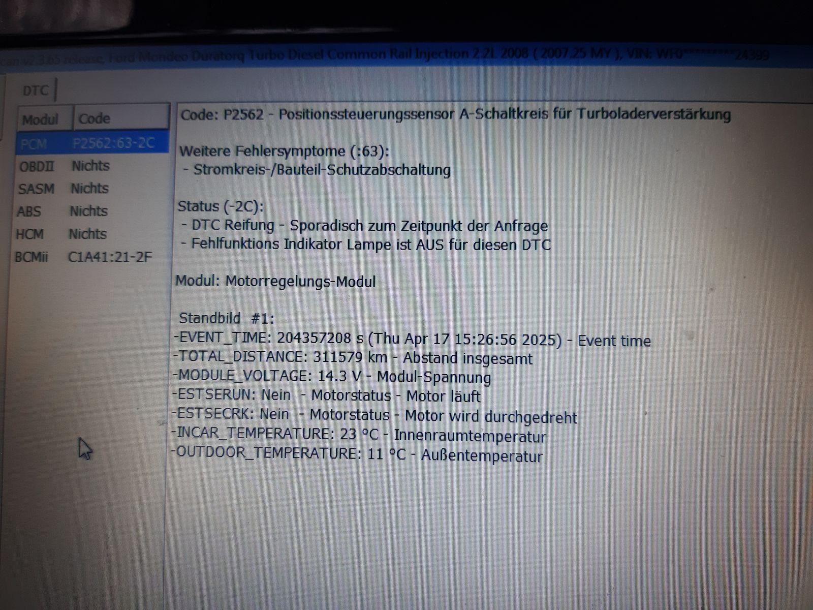 Nach auslesen mit Forscan kommt der gepostete Fehler. Auto fährt normal, Verbrauch normal, kein russen aus dem Auspuff. Lediglich die gelbe Lampe Motorstörung ist an. Diese verschwindet auch manchmal von alleine.
