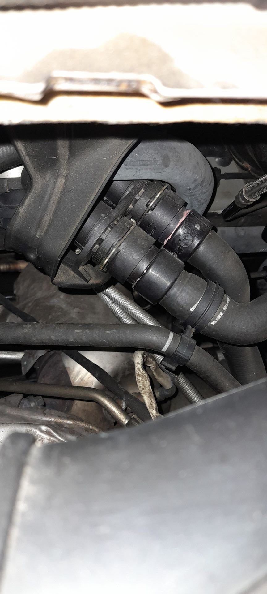 Mein Mondeo MK4 1.6 ecoboost Baujahr2013 165000km gelaufen verliert schleichend Kühlflüssigkeit .Siehe Foto,kann das mit eine Ursache sein? Rote Rückstände