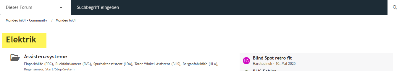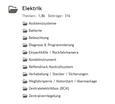 Wie ihr ja sicher bemerkt habt sind die Themen hier gruppiert in einzelnen Rubriken abgebildet, z.B. "Batterie" unter der Kategorie "Elektrik", usw.: