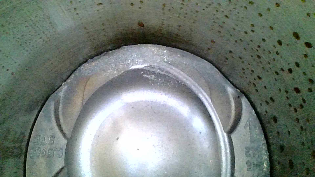 Nachdem ich jetzt endlich den neuen Zahnriemen einbauen konnte, habe ich die Kurbelwelle gemäß Anleitung um 720° gedreht, um zu prüfen ob das Nockenwellen-Werkzeug 303-1097 erneut auf der 12-Uhr-Position passt. Das hat auch funktioniert, aber mir fiel auf, dass sich die Kurbelwelle schwerer drehen ließ als vor dem Unfall. Der Riemen schleift nirgendwo, ist korrekt aufgelegt und gespannt. Es berühren sich auch keine Kolben/Ventile. Der Motor lässt sich ohne Gewalt mit kurzer Ratsche einhändig durchdrehen, aber ich spüre den Unterschied deutlich. Ich versuchte mir das mit der längeren Standzeit zu erklären, vielleicht erhöhte Reibung durch einen nachlassenden Ölfilm. Beim Durchdrehen waren keine auffälligen Geräusche zu hören, der Widerstand war einfach nur deutlich ausgeprägter als vorher. Mir ist noch etwas anderes aufgefallen. In einem Zylinder waren an der Wand viele kleine Tröpfchen zu sehen:
