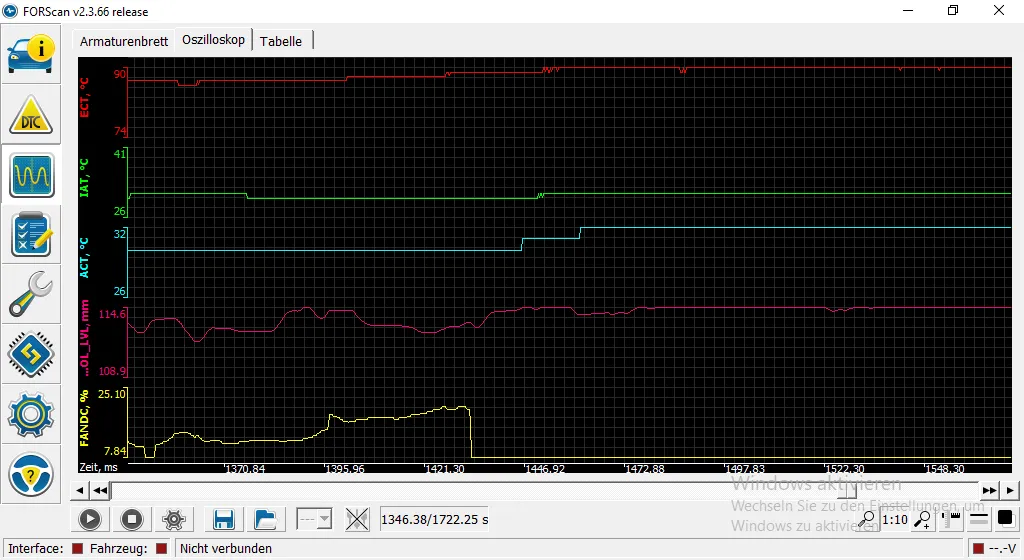 Im Oszilloskop von Forscan habe ich folgende Sensoren hinzugefügt und bin dann einige Kilometer auf der Autobahn gefahren:
