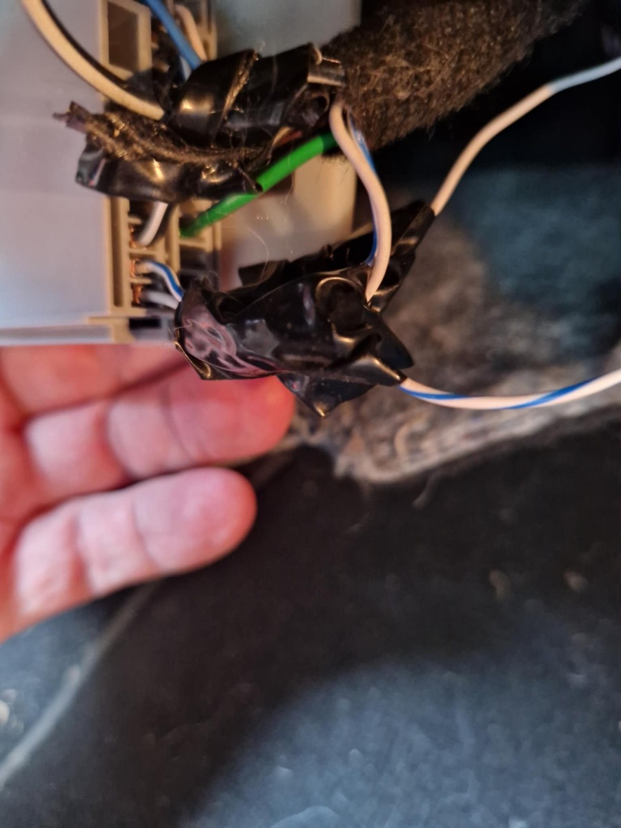 Wiring spliced into loom under glove box.