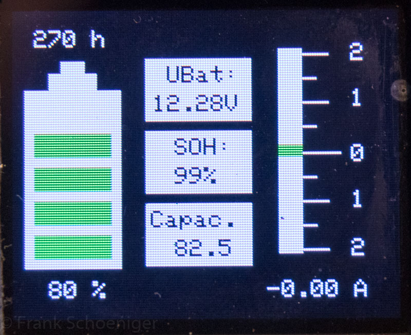 Dieser hat die Aufgabe den Ladezustand (SOC = State-Of-Charge) der Batterie noch besser bestimmen zu können. Der Sensor misst die Batteriespannung, Temperatur (naja, nicht wirklich die der Batterie sondern eher der Umgebung der Batterie) und den Stromfluß in/aus der Batterie. Er wird am Minuspol eingeschliffen, liegt also elektrisch gesehen in Reihe mit der Batterie: