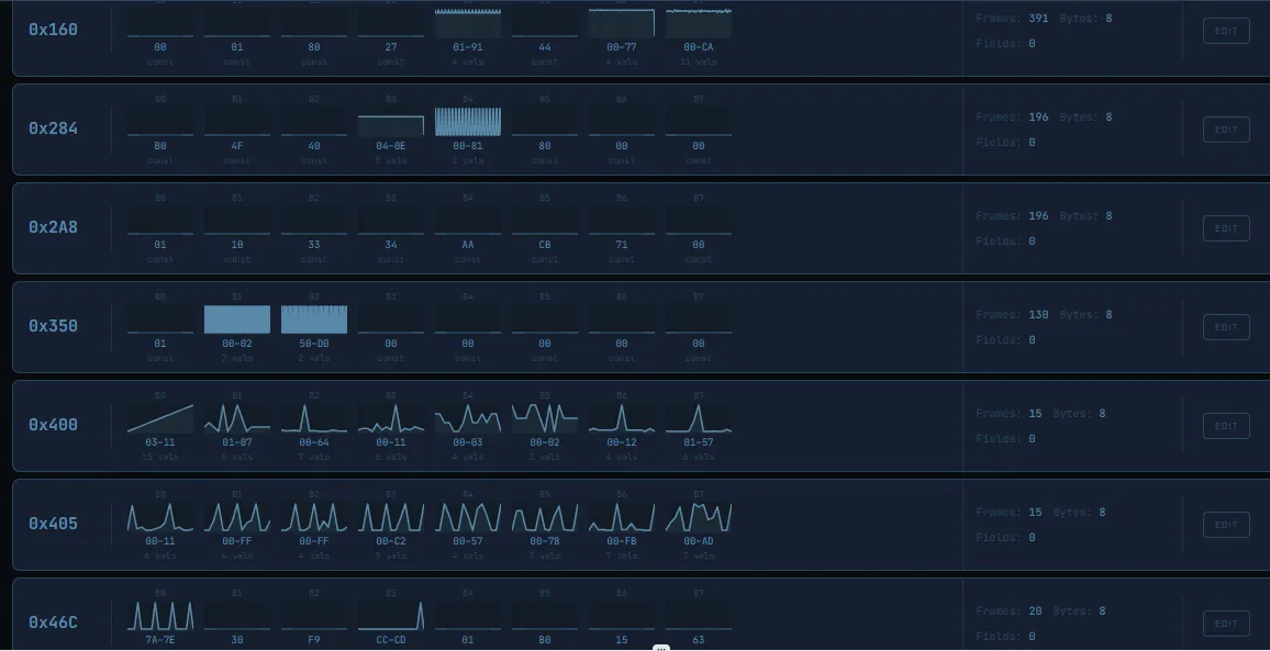 - Verarbeiten, analysieren und visualisieren von Dump-Daten im "CANDUMP" (und später auch mal in anderen) Datenformat