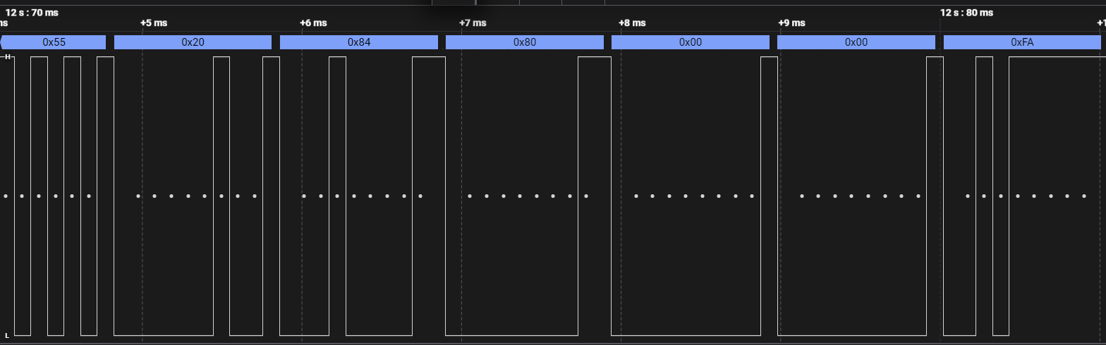 So habe ich den Protocol-Interpreter vom Logic-Analyzer eingestellt und sehe damit dann auch diese Frame-Daten in Form von Bytes.