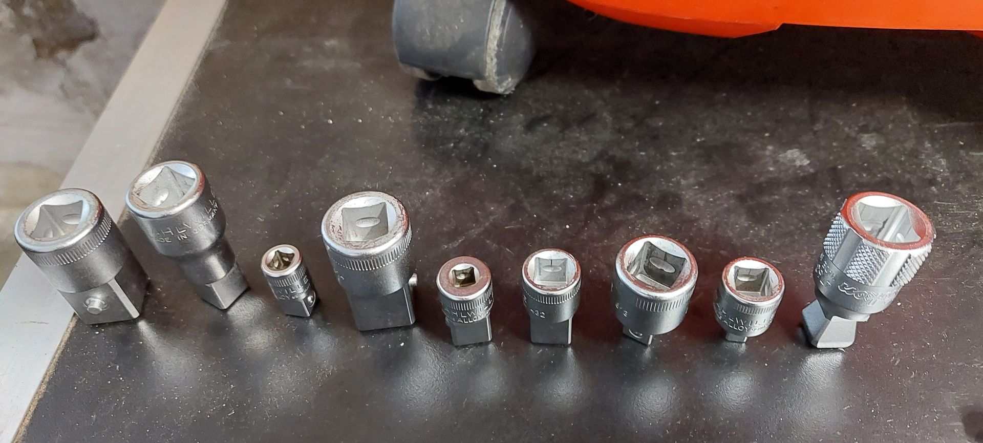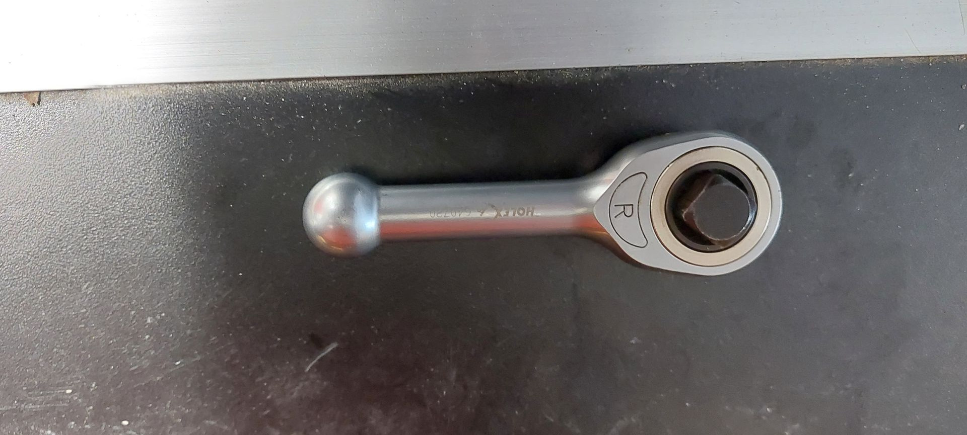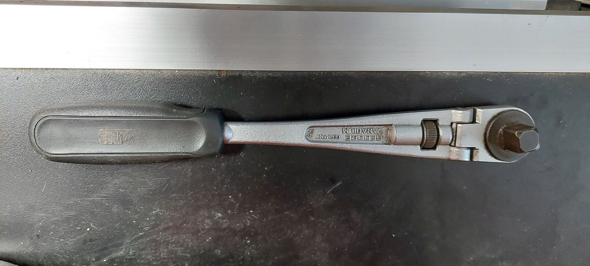 Ich konnte leider erst heute mit der linken Seite weitermachen. Dabei habe ich gemerkt, wie wichtig gutes Werkzeug bei derartigen Arbeiten ist. Meine Umschalt-Knarre von der "Qualitäts-Marke" Mannesmann hat bereits beim Reindrehen aufgegeben, also noch vor dem eigentlichen Festziehen der Schrauben. Zum Glück ist meine Hand beim Durchrutschen bzw. dem anschließenden Aufprall nicht verletzt worden.