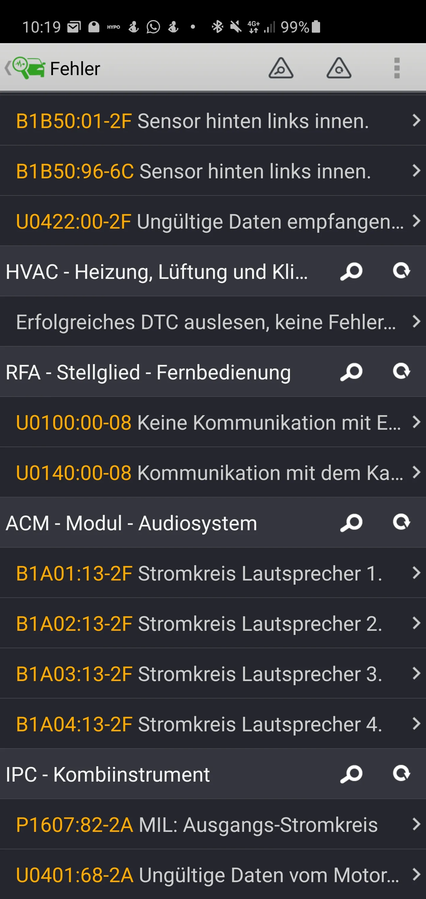 • verschiedene Fehlercodes (DTC) - Kommunikationsausfall - im