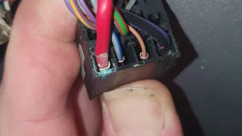 Sind 2 Stecker Fahrzeug seitig, an einem sind nur dünne Kabeln schätze mal Lautsprecher oder so und der 2te Stecker da sind verschiedene Querschnitte unter anderem der Can-Bus und da habe ich eine grüne Spur (weiß nicht wie man das nennt ? Grünspan???) Die Stecker Sicherung war auch gebrochen.