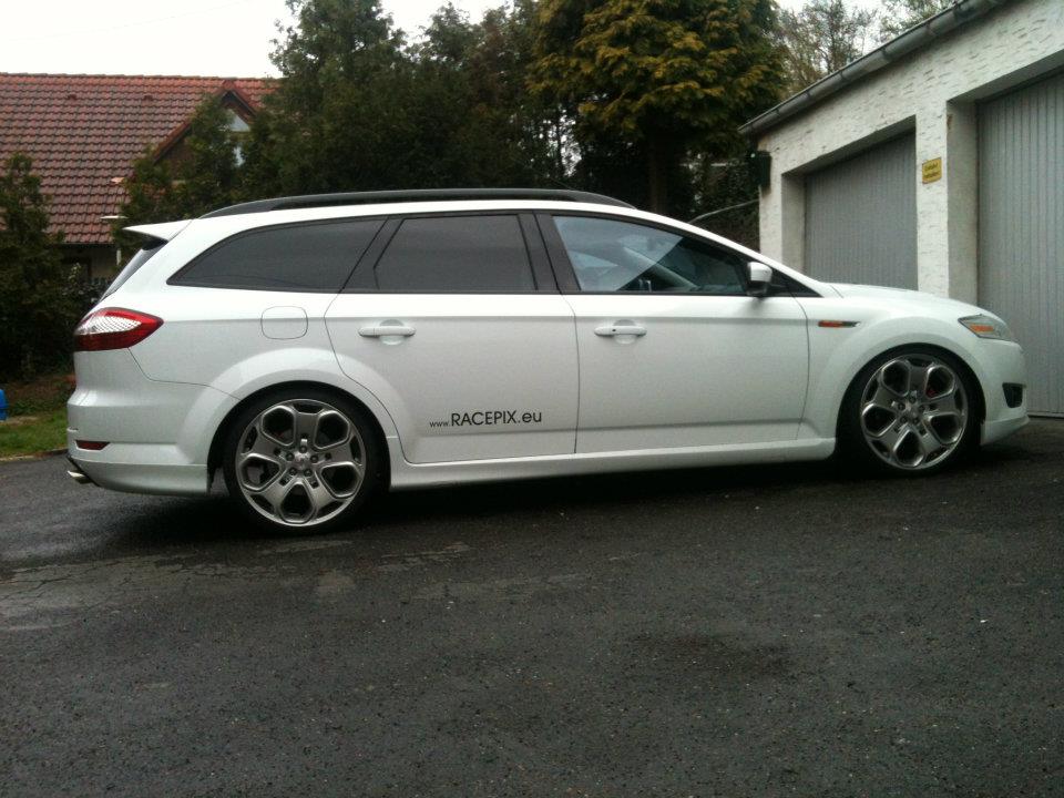 ich weiss nicht wie die gewindeverstellung beim mondeo an der hinterachse aus sieht aber ich hab bei unserem vectra turbo den gewindeteller komplett hoch gedreht und raus genommen und dadurch ging es nochmal 2cm nach unten.