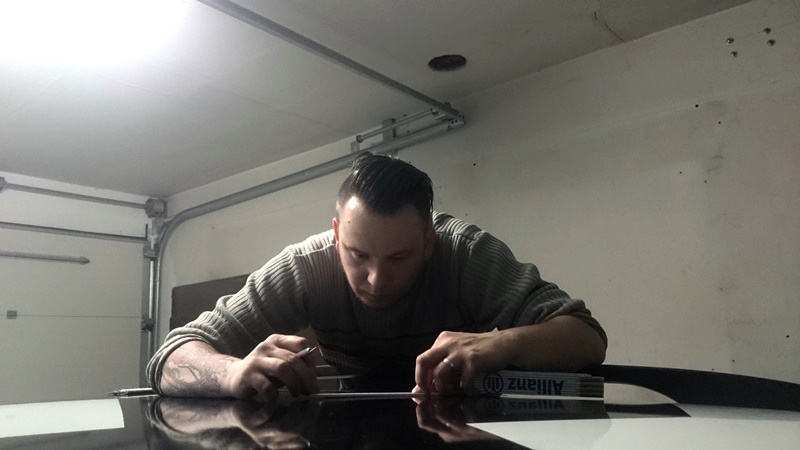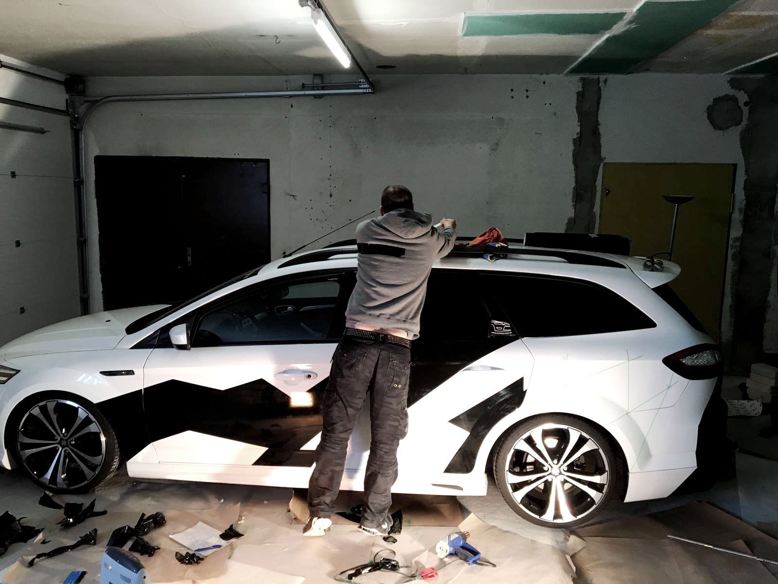 Aber da kam mir dann noch ne Idee und bei nem Kölsch kam dann eins zum anderen. Folie organisiert und rann ging es an den Weißen. Das Design wurde grob vor gezeichnet und der Rest wurde dann frei aufem Wagen gemacht. -