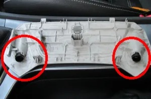 Beim ausbau der Blende vom Brillenfach sind mir die rot eingekreisten "Blindstopfen" aufgefallen. Wozu dienen die? Ist das vielleicht in einer Variante mit Alarmanlage mit Inhalt gefüllt?