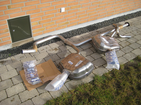Price on a duplex system is BIG in Denmark (7500,- DKR ++), so I ordered my system from Sweden from a Volvo dealer. As the new Volvo V70 is using the same base as the Mk4 Mondeo, the back part of the exhaust system is a direct plug-and-play swap. So one R-design (part no: 31269693) was ordered, price in Sweden: 3662,- SKR!!!! CHEAP!!!!! :thumbup: