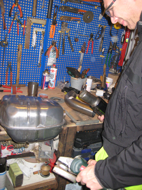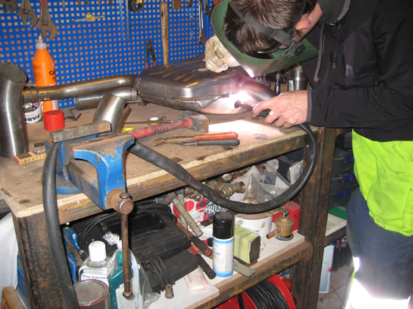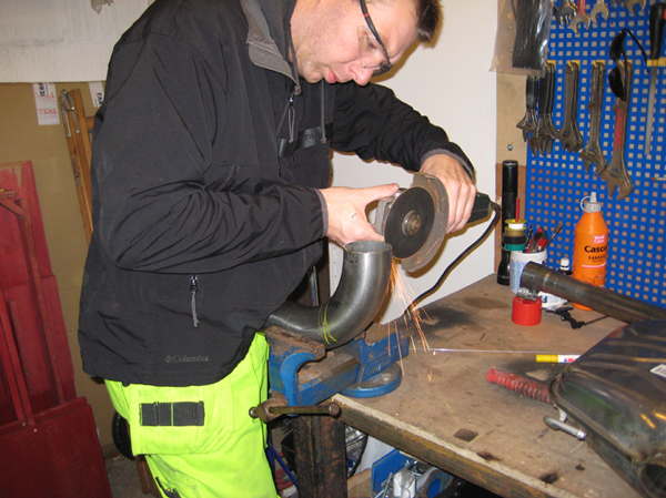 • So, after getting the new exhaust system home I had to make my own end tips to point down. So off with the straight pipes pointing out