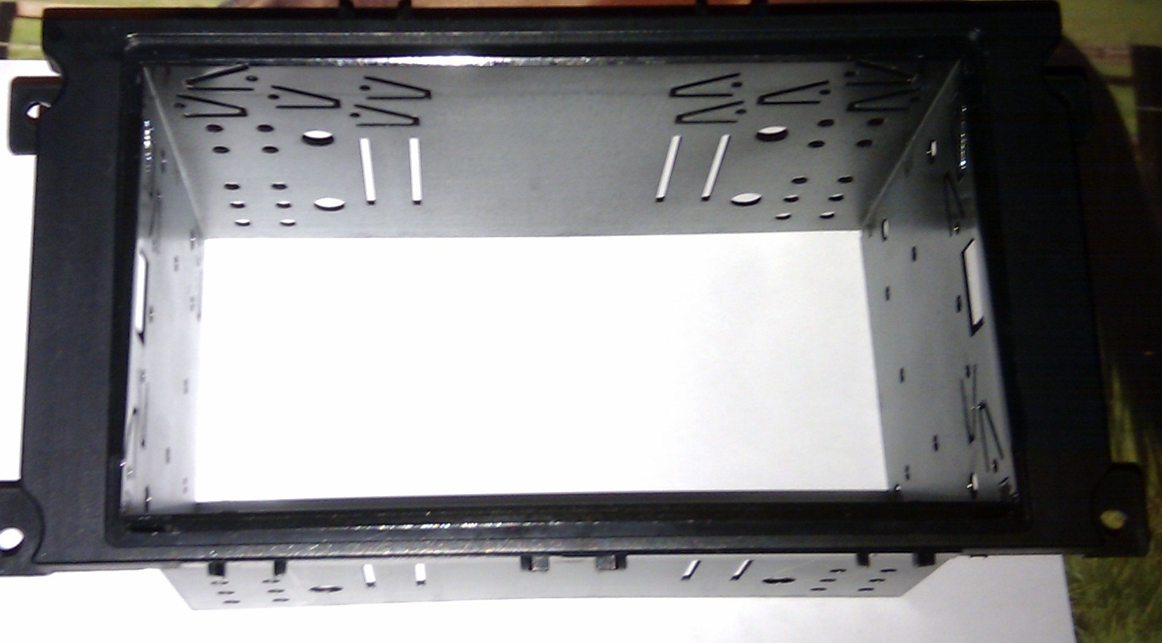 Es sieht für mich so aus als müssten Sie in die Innenwand des Käfigs, da die doch die Entriegelung darstellen soll, wenn das Radio aus der Bledne getauscht werden soll, oder nicht?