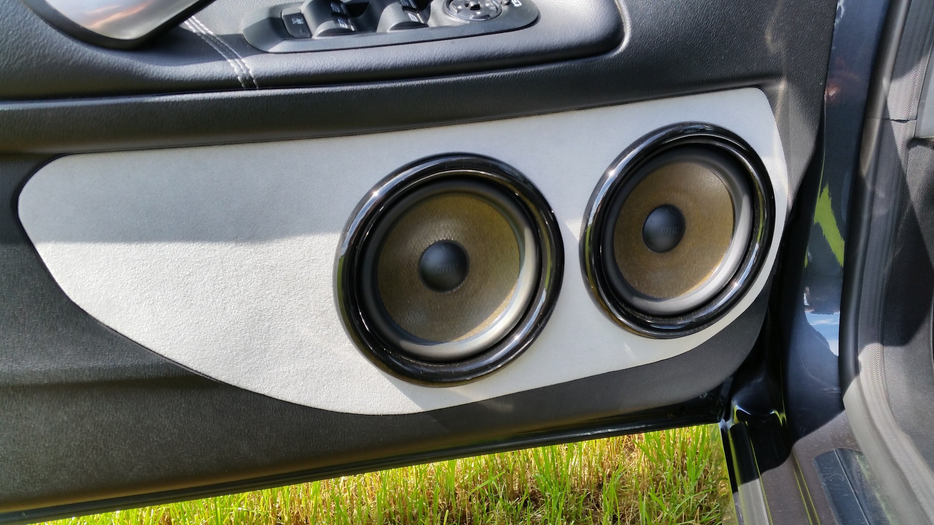 In der Tür sitzt der Mitteltöner Eton 3-401A4 an den Orginalhochtönerpositionen. Ausserdem hab ich 4 Eton WA1-160SG Tieftöner in neuen Doorboards verbaut. Zusatzlich kam noch eine Ampire Endstufe MMX 2 dazu.