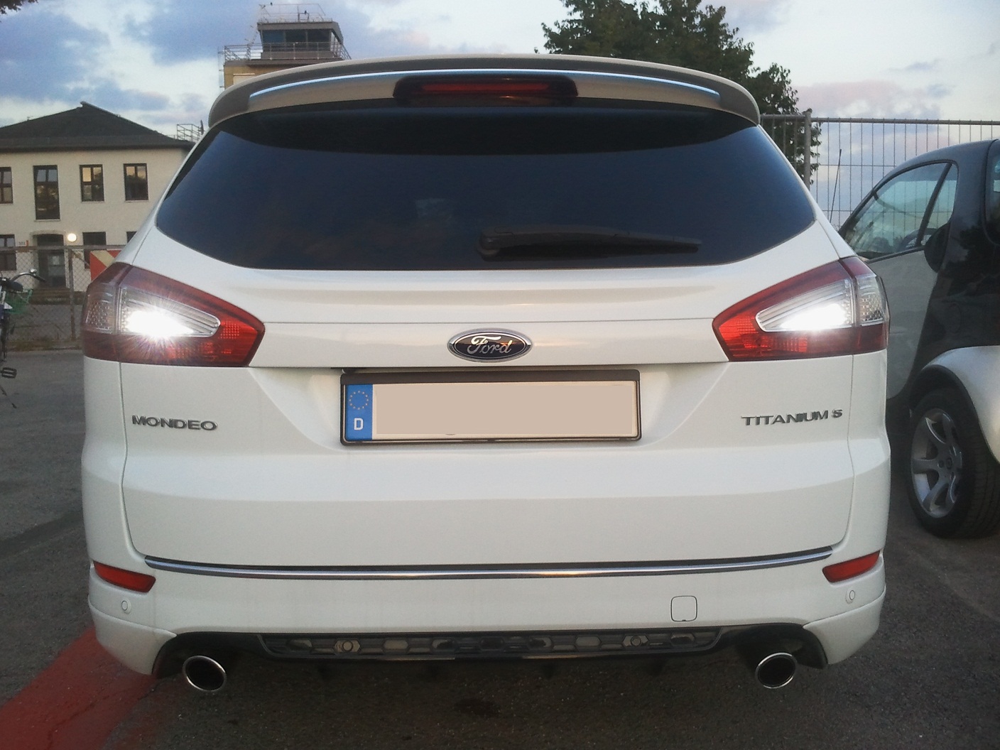 Ich kann mir gut vostellen, dass die neue LED in anders geformten Spiegeln im Rückfahrscheinwerfer und ohne LED-Immitation auf den Klarglasaußenseiten eine hohe Helligkeit hervorbringt. Im Mondeo bringt das Leuchtmittel nichts.