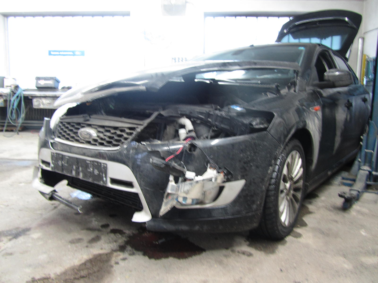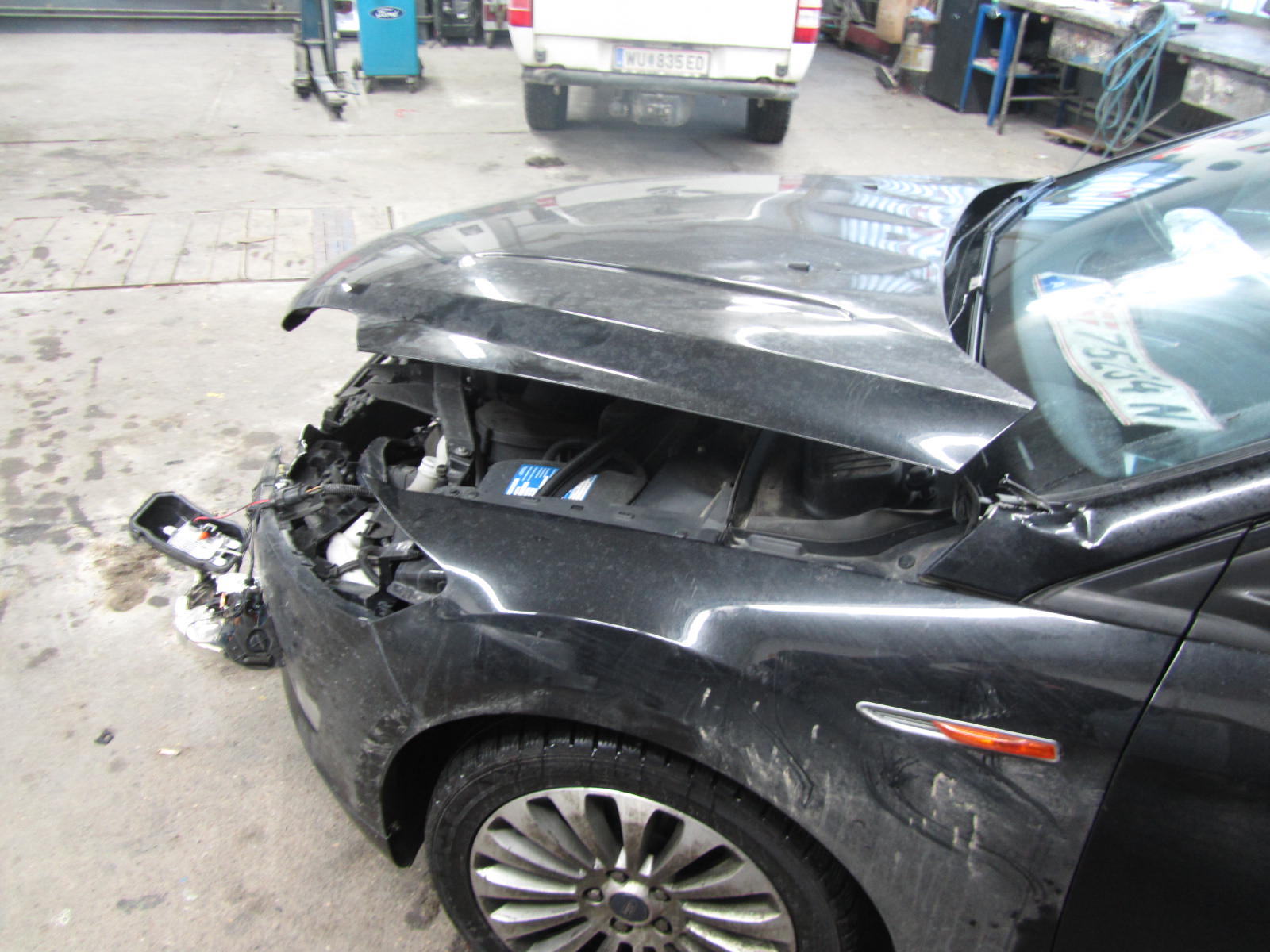 Wir fuhren danach aber trotzdem zur Kontrolle in Spital, wo sich bestätigte dass meine Frau einen Schutzengel hatte der schneller fliegen als sie fahren konnte. Hatte sie doch "nur" einige Blutergüsse an den Beinen und eine Art Schleudertrauma von Aufprall und Airbag. Trotzdem möchte ich diesen Aufprall einer, laut den eingetroffenen Jägern ca. 110-120kg schweren Wildsau, mit einem nicht so sicheren Auto wie dem Mondeo nicht erleben!!!