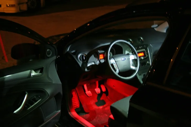 - rote LED's als Fußraumbeleuchtung vorne. Fassungen waren vorhanden, also nur Stecken.
