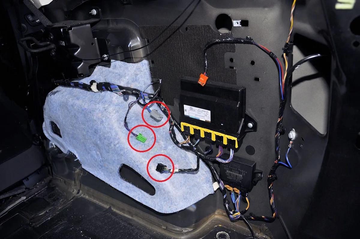 Dazu habe ich die Seitenverkleidung abgebaut und dahinter finde ich dort diese 3 Stecker, die lose rumhängen. Siehe Bild: