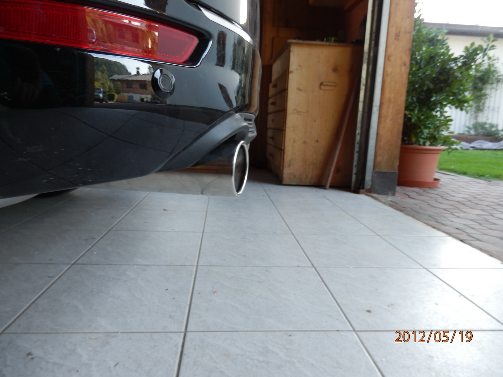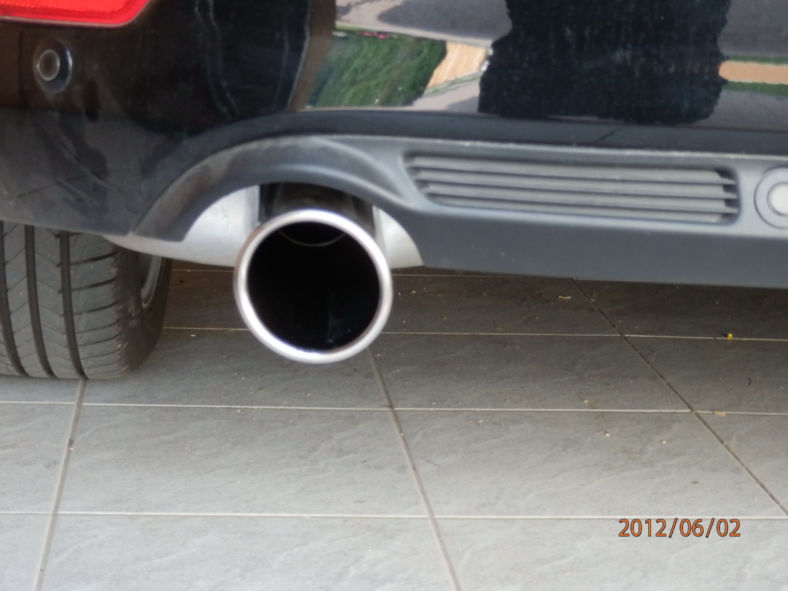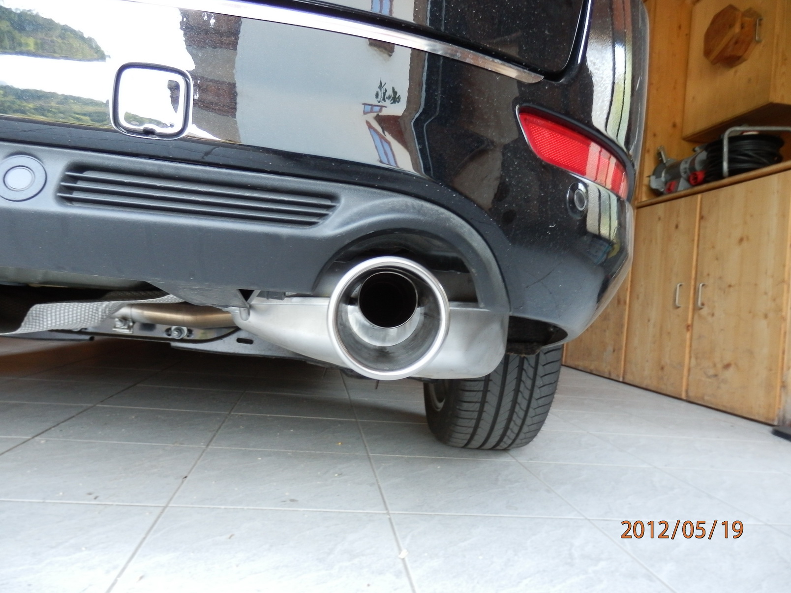 Die Rohre mittig in die Heckblende zu richten ist nahezu unmöglich ohne grösseren Schaden anzurichten.Man müsste das Auspuffrohr warm machen und dann versuchen in die richtige Richtung zu biegen, ist mir aber zu gefährlich. Aber sonst gefällt mir das Ergebniss schon sehr gut. -