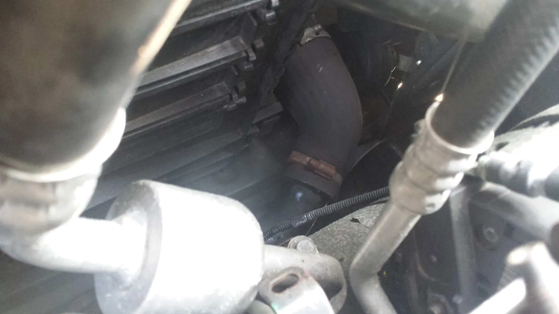 die 2 vorderen dünnen Schläuche sind übrigens von der Klima, nur der hintere dicke ist vom Ladeluftkühler