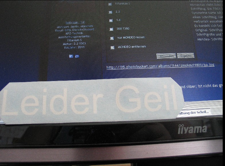 Momentan steht links an meinem Heck der MONDEO- Schriftzug. Ein TDCi- Logo habe ich nicht. Wegen der Symmetrie hätte ich gerne an der rechten Seite auch einen Schriftzug. Dabei sollte das ganze natürlich nicht verbastelt aussehen.