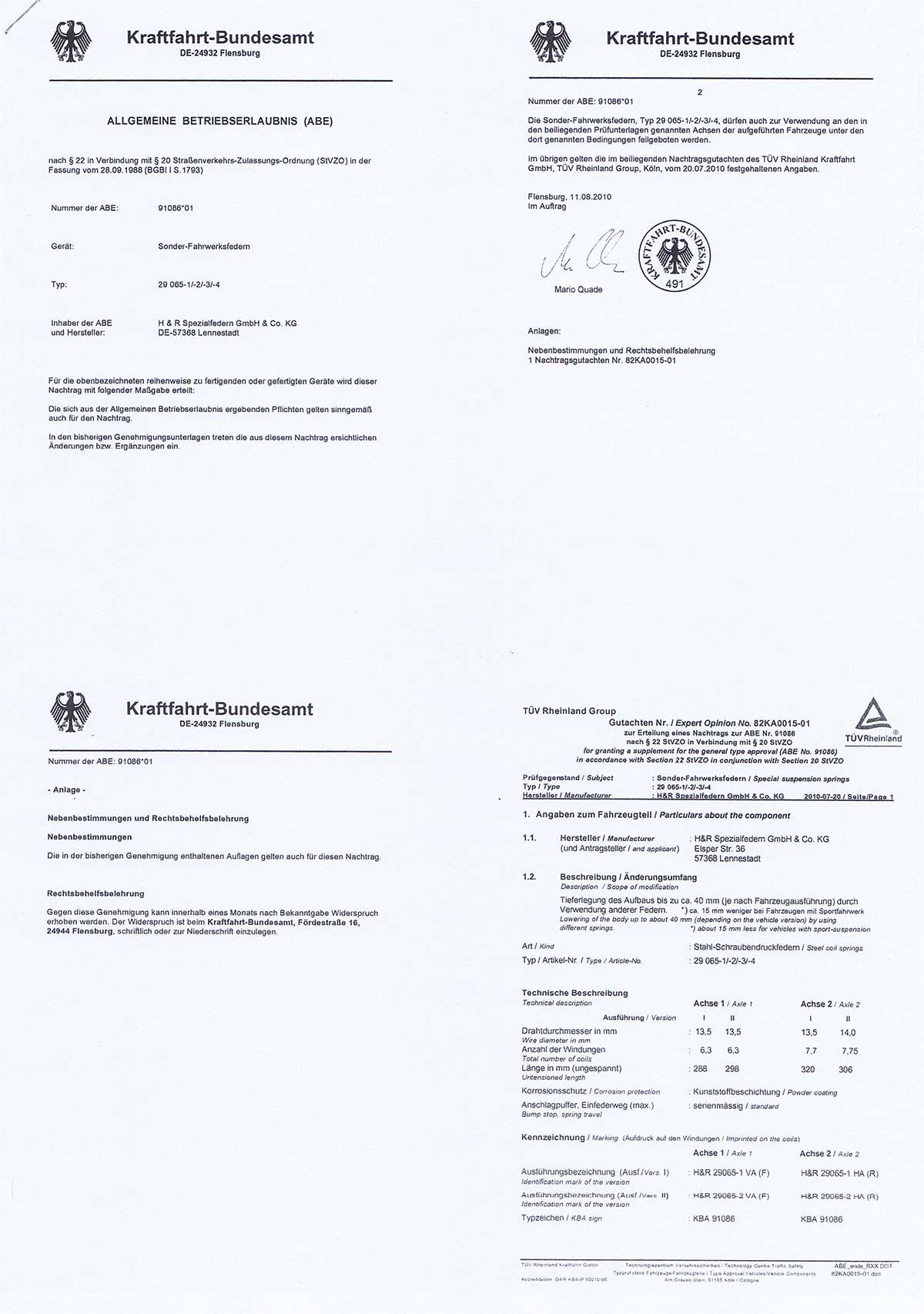 Für die H&R Federn gibt es tatsächlich eine ABE.