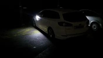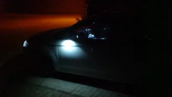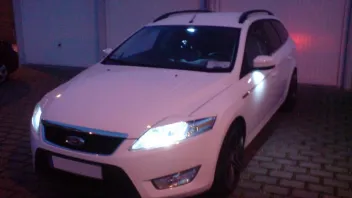 Die Neuen sind exakt weiß und passen so farblich zum Standlicht. Außerdem sind sie deutlich heller als die hier weit verbreiteten von Hypercolor mit 3 SMDs und 90° Abstrahlwinkel (225 statt 45 Lumen). Die Ausleuchtung ist so gut, dass hinter dem Mondeo ein Schatten in Fahrzeugbreite entsteht.