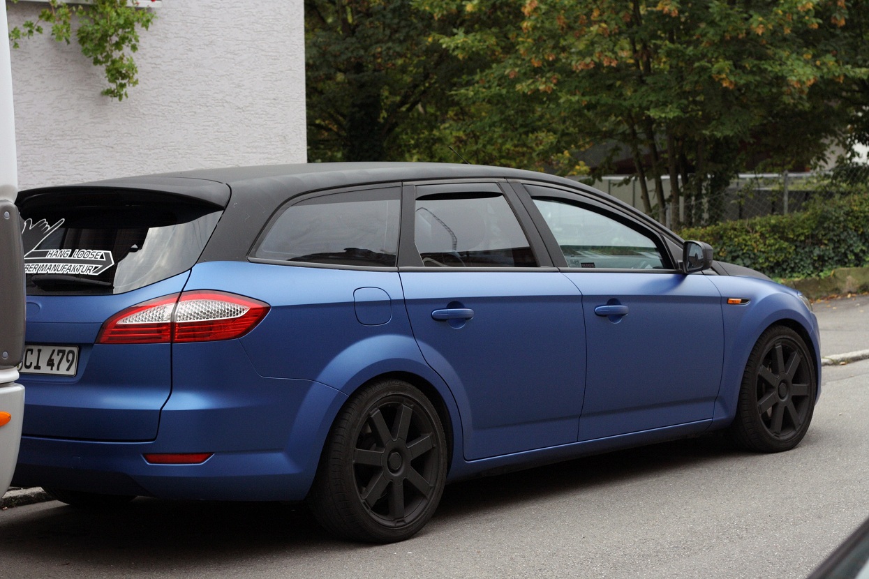 Also ein Mondeo Kombi kostet bei mir 1800 mit Farbfolie glanz oder Matt und 2200 wenn es z.B. Carbonfolie ist. (Carbonfolie ist fast doppelt so teuer)