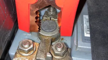 Fast das Wichtigste Kriterium der Klemme überhaupt. So oft sehe ich einfach nur "angequestschte" Leitungen. Klemmen, bei denen Kabel direkt angequetscht werden sind nur aus Kostengründen so designed und sollte man meiden. Dabei rede ich nicht von einer guten, sauberen Quetschung, wie man sie bei Kabelschuhen, etc. herstellen könnte. Die meist großen Querschnitte liegen dann nur mit ein paar Adern quasi loose auf den Klemmbacken. Das ist nicht nur sinnlos sondern auch gefährlich, denn durch die hohen Ströme und den effektiv niedrigen Querschnitt in Kombination mit einem hohen Übergangswiderstand kann das ganze so heiß werden das es abfackelt. Eine gute Klemme verfügt über einen Schraubanschluß für einen solchen, ordentlich aufgequestschten Kabelschuh: