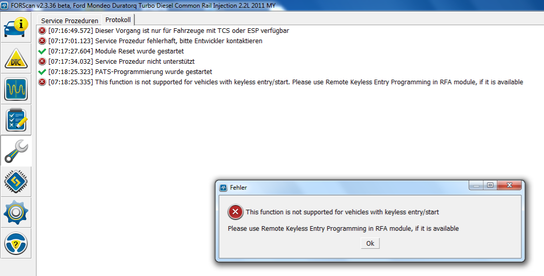 PATS-Programmierung bringt gleich nach dem Start die Fehlermeldung das Fahrzeuge mit Keyless-Go nicht unterstützt sind: