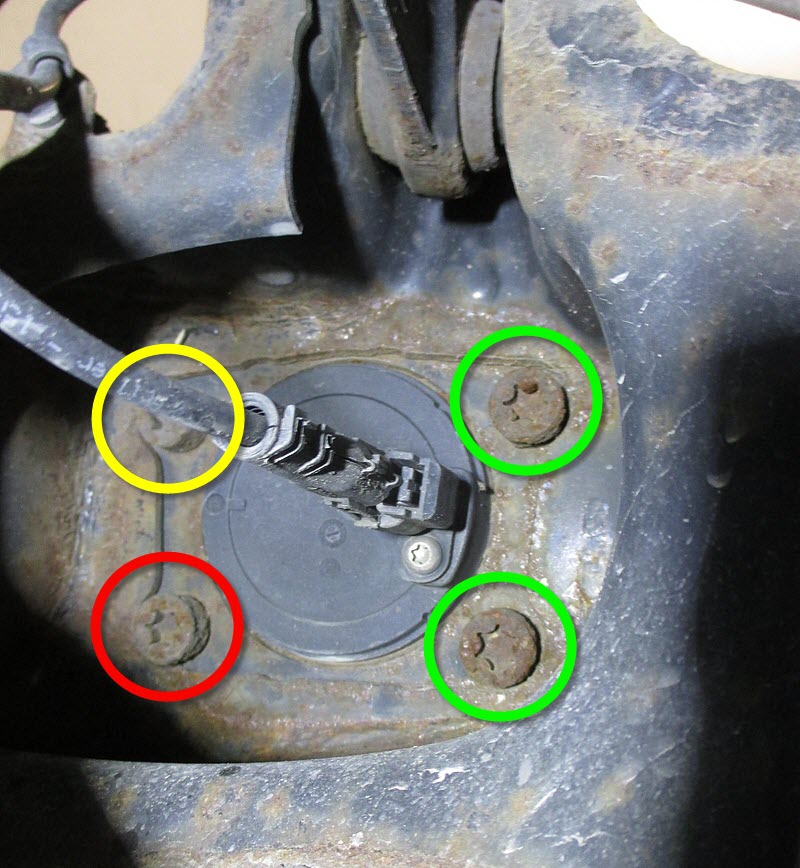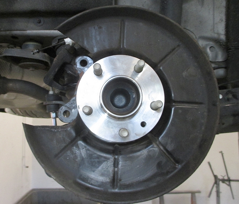 Radlager, da braucht man eine große Ratsche (400-450 mm Schaft), damit geht es dann recht leicht die Schrauben zu lösen. An eine Schraube kommt man besonders schlecht ran, die in Fahrtrichtung gesehen, hinten unten. Da ist der Stabi im Weg. Etwas einfedern mit Getriebeheber schafft minimale Erleichterung. Am besten eine Ratsche mit Gelenk nehmen.