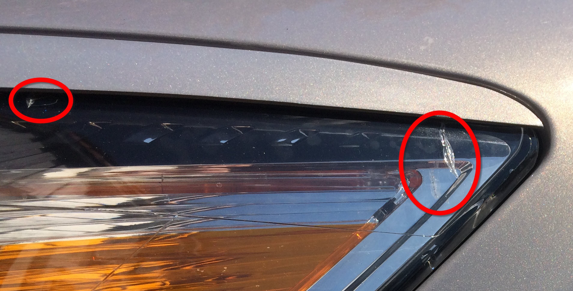 Hatte ich auch, nur nicht so schlimm wie bei Dir. Da platzt die obere Beschichtung vom Kunststoffkörper auf, meist durch Steinschlag. Da dringt Feutchtigkeit ein und der Rest erledigen dann die Gezeiten von Winter und Sommer... ich dachte das wäre normal. Wundert mich das das hier noch niemand hatte. Zum "Glück" ist mir mal einer seitlich rein und da habe ich einen neun Scheini bekommen und das Problem war behoben