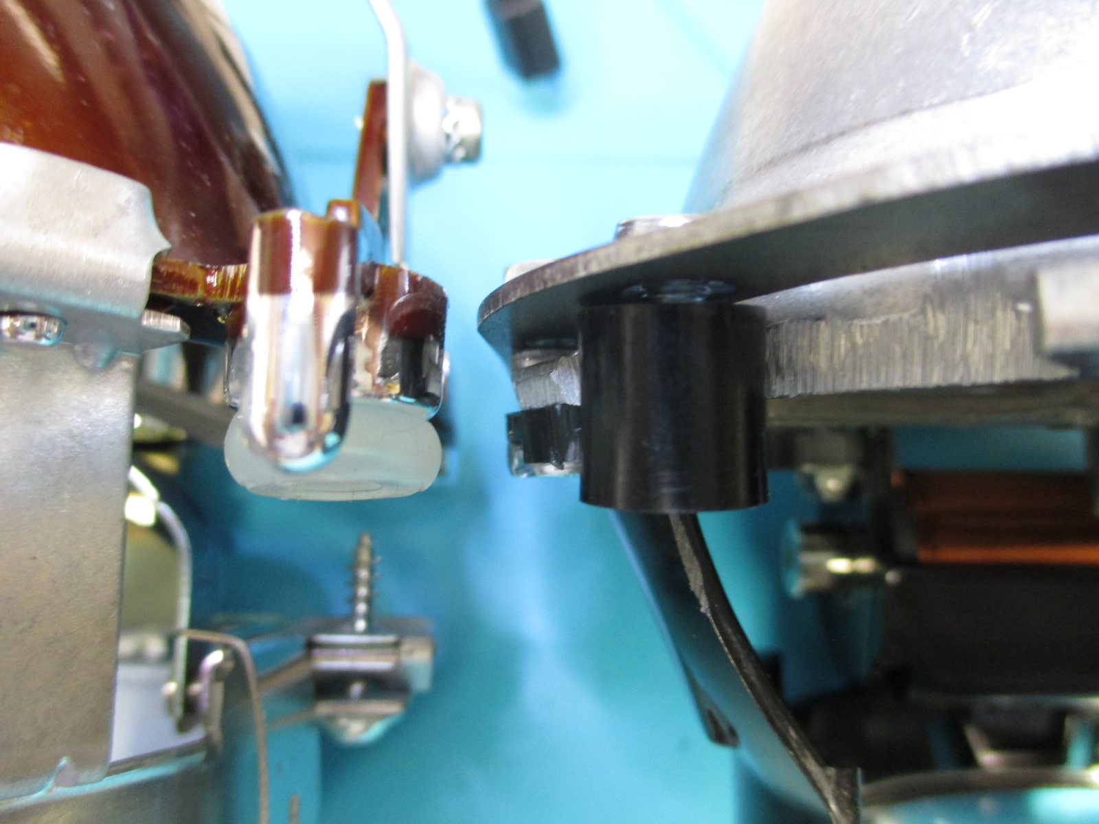 Laut Montagevideo werden die Projektoren mit starren Distanzhülsen am Reflektor befestigt, im Original sind es Gummi-Schwingungsdämpfer: