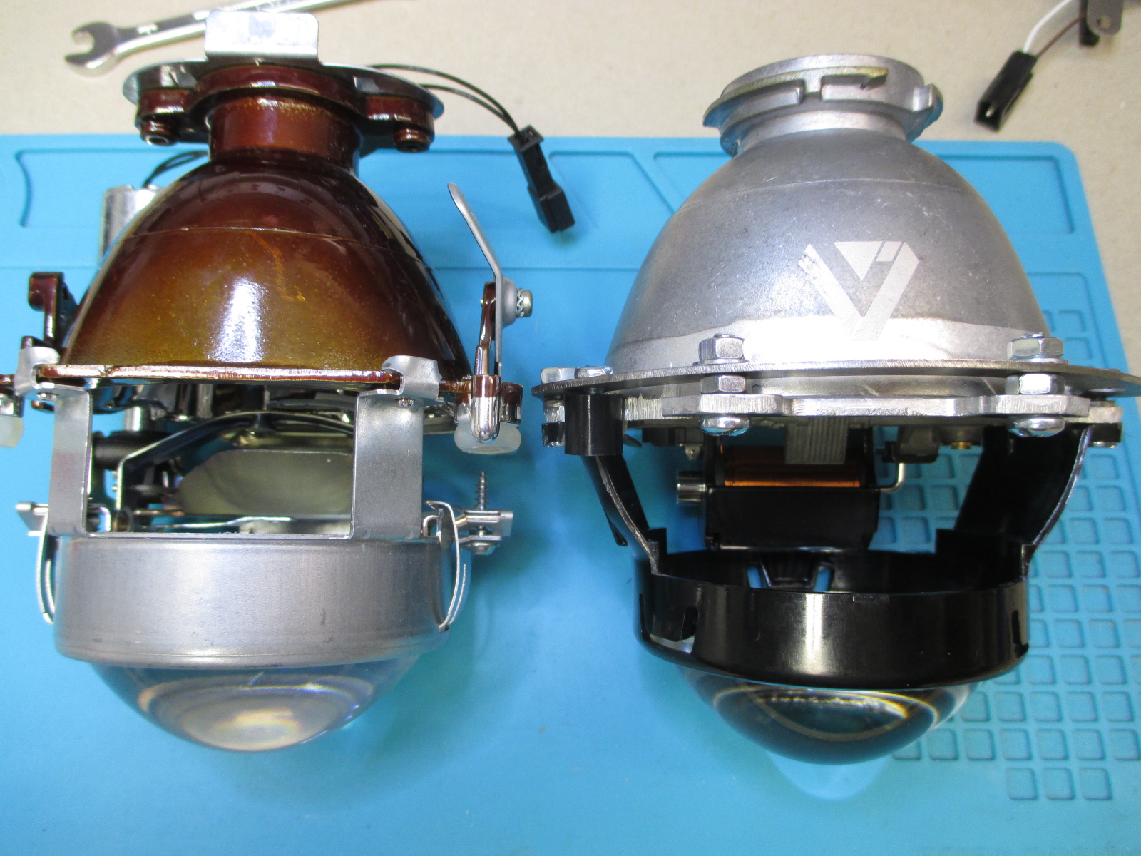 Ich baue gerade auch auf die Retrofit Xenon um (von Original-Xenon). Hier mal beide Linsen im Vergleich nebeneinander (links Original, rechts Retrofitlab):
