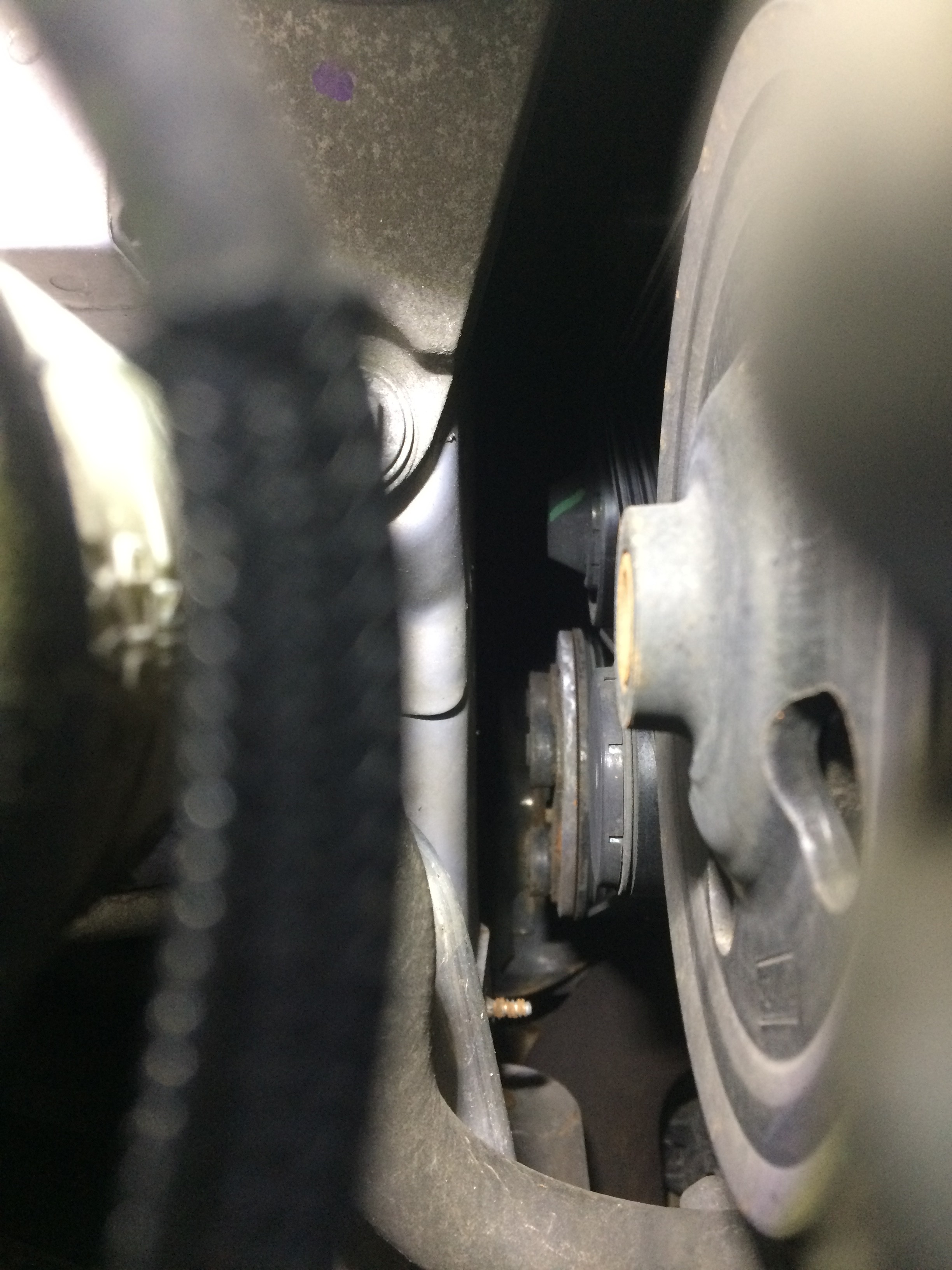 Ups, wahrscheinlich hat digdog doch recht, denn er schreibt "hinter der Zahnriemenabdeckung" und die habe ich bislang nicht abgehabt. Dann habe ich unterhalb vom Generator nicht die Wasserpumpe