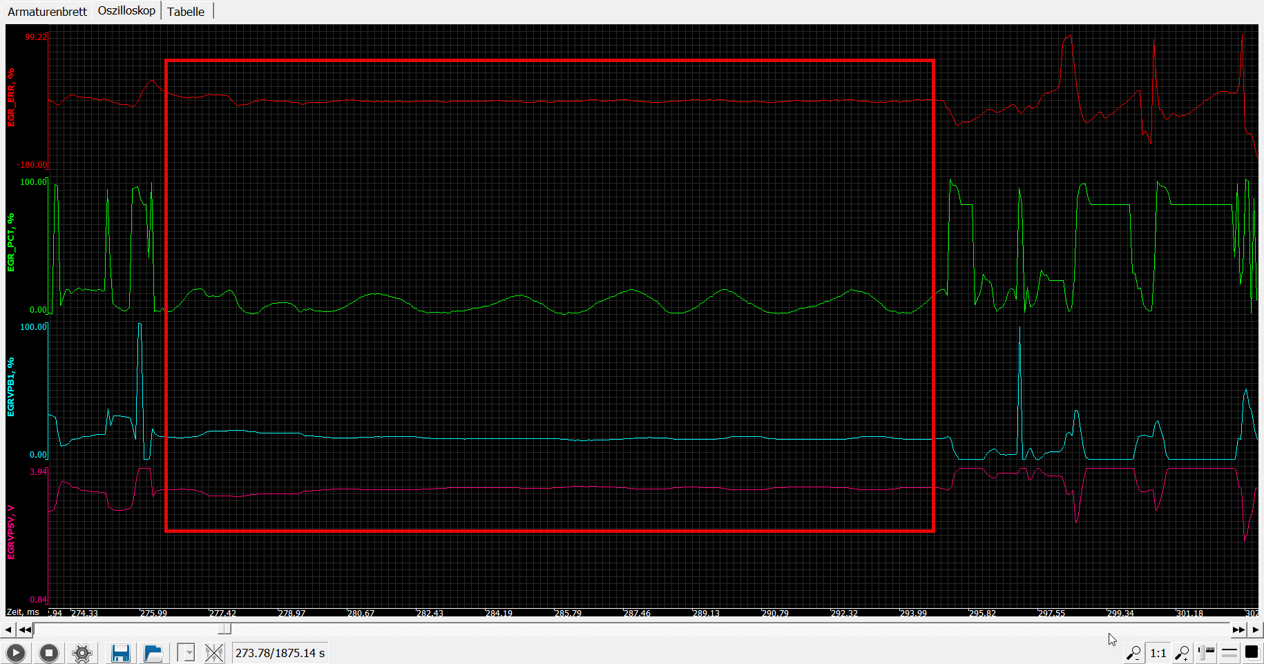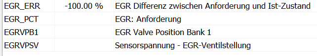 Vielleicht ist es auch die hohe Flatline vor der niedrigen wo der DTC geworfen wird, das kann man so in echtzeit garnicht beurteilen. Also EGR_PCT fest im HIGH-LEVEL... würde ja passen.