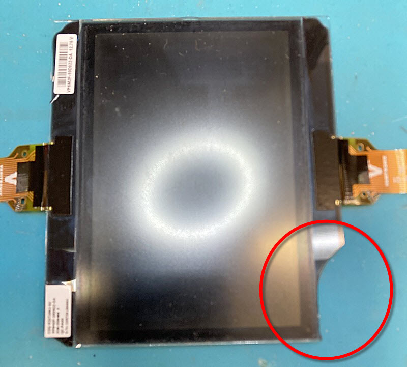 Die Funktionalität des Displays (Mikrocontroller) konnte ich wie vermutet wiederherstellen, aber mit Deinem Display (das Modell "Leipniz" mit der Ecke) ist in dem unteren rechten Quadranten "blind". Genau da wo die Ecke ab ist... komisch, gell?