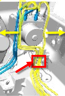 Hier habe ich nun den unterhalb sitzenden Plastikhalter entfernt und die Leitungen in Richtung der gelben Pfeile so weit es geht weggeschoben. Dann kann man das Modul samt Halter so weit zu sich ziehen das es unten aus den Führungsbolzen/Gewinden raus ist. Dann muss man es "rausfummeln", gegen den Uhrzeitsinn drehen und durch die immer wieder zurückdrückenden Bremsleitungen durchziehen. Dabei habe ich darauf geachtet das ich das Modul nur um seine Achse drehe und möglichst nicht kippe das keine Bremsflüssigkeit aus den oberen Öffnungen fließt. Auch weil unterhalb vom ABS, sinnvollerweise, ein offener(!) Motorkabelstrang in einer Pritsche verläuft. Was das wieder soll erschließt sich mir auch überhaupt nicht, denn sonst ist alles schön in Kunststoffrohr ummantelt. Läuft hier Bremsflüssigkeit rein, wird diese auf Dauer die Leitungsmäntel schädigen/auffressen - was das dann bedeutet ist wohl jedem klar...