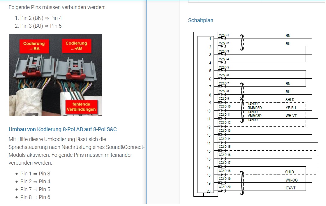 Da wäre noch eine Frage zum Loop Stecker: In der Umbauanleitung steht, dass man die Pins 3 & 5 verbinden muss aber im Schaltplan ist das nicht aufgeführt?