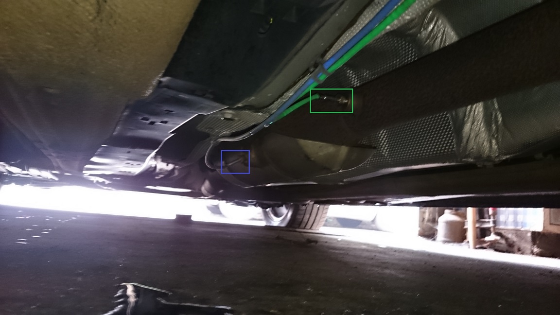 Unter'm Auto: der Abgastemperatursensor vor'm Partikelfilter sieht sehr neu aus. Also wurde dieser höchstwahrscheinlich getauscht.