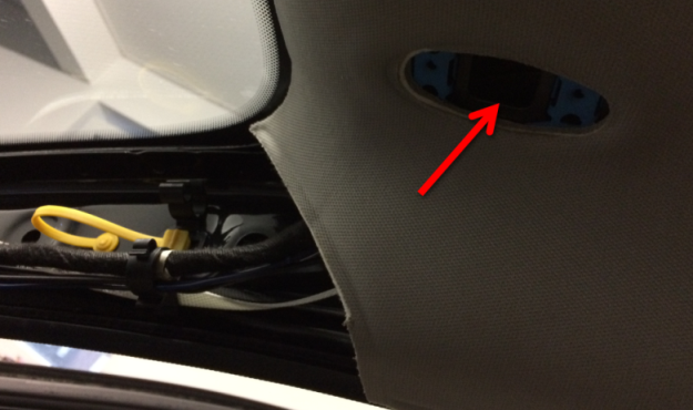 Innenraumleuchte ausgebaut und Kabel vom Sensorgehäuse in Richtung Innenraumleuchte verlegt.