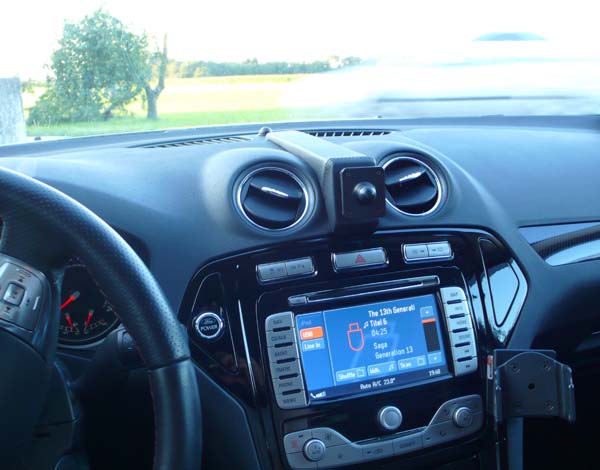 Von Brodit gibt es für den Mondi drei verschiedene Halterungen, rechts ungefähr da, wo bei manchen der Startknopf sitzt, rechts von der Mittelkonsole, auf Höhe des Klimablock und links an der A-Säule.