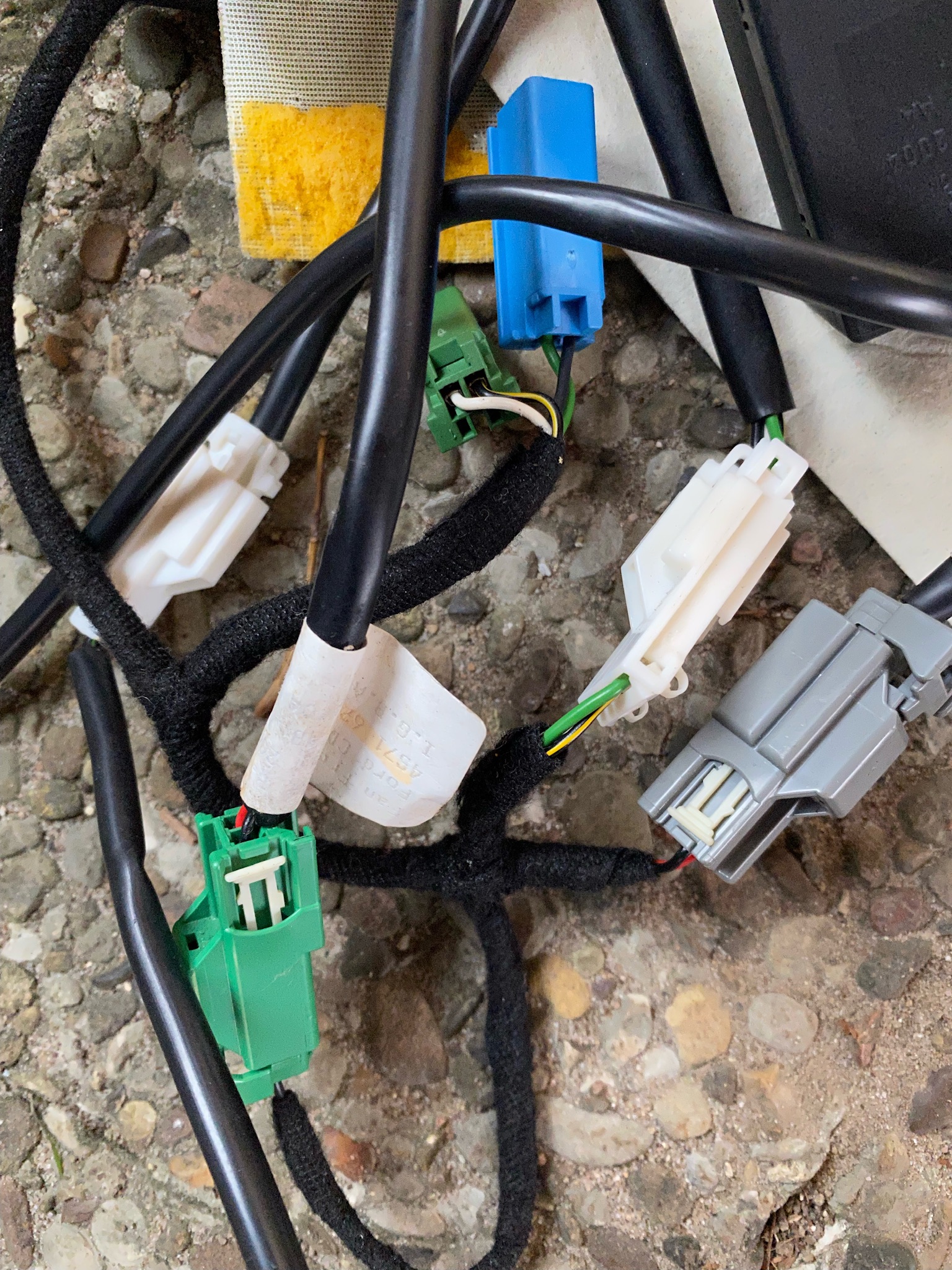Ein Stück vor dem grünen Canbusstecker lag bei mir noch ein grauer Stecker. Das war die Spannungsversorgung vom Sicherungskasten hinten links. Da musste ich überhaupt nicht ran.