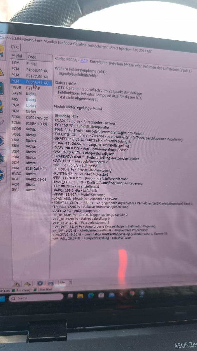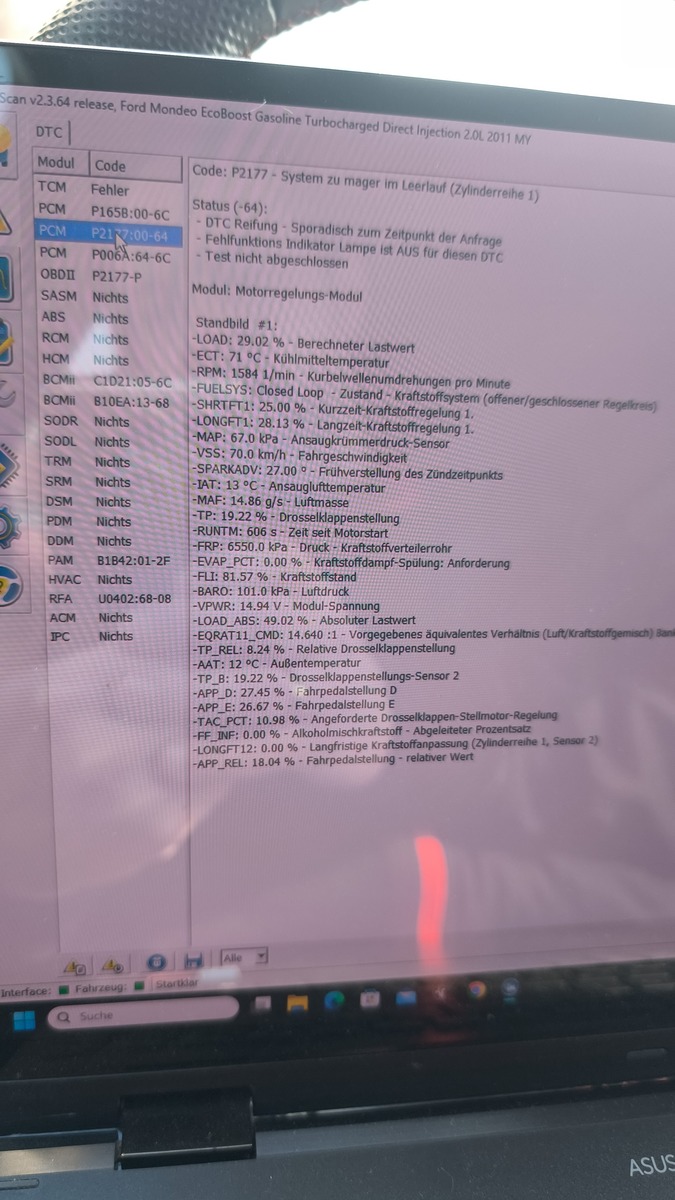 Jetzt gibt es noch die Vermutung daß es vllt der Kühlmitteltemperatur Sensor sein könnte. In Display und in der OBD App stehen zwar plausibele Temperaturen. Aber könnte es trotzdem sein das im Steuergerät eine zu kalte Temperatur ankommt, und er dann die ganze Zeit denkt das er im Kaltlauf ist?