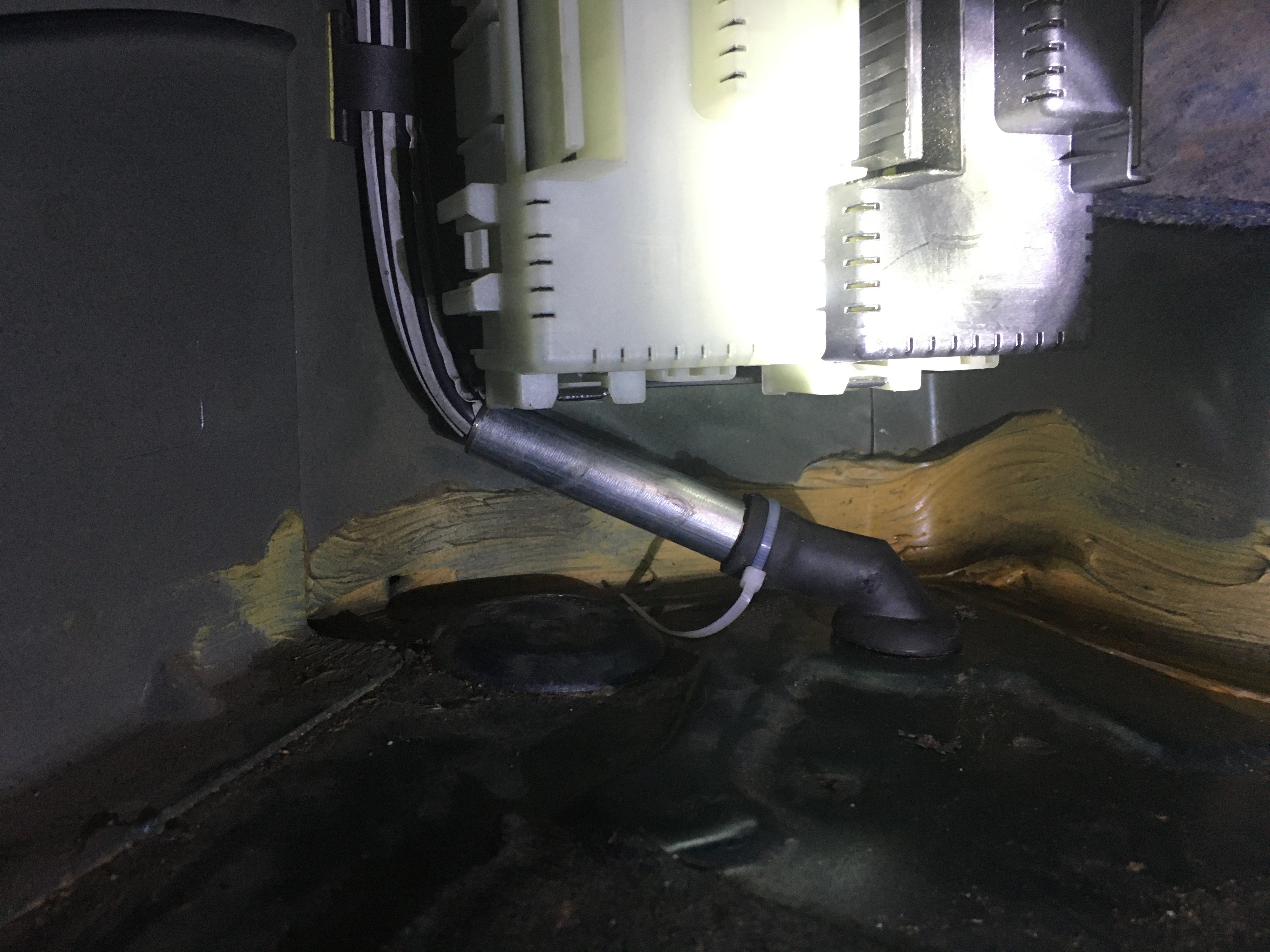 Servus. Ich habe hinten auch frei gemacht und kontrolliert und musste feststellen, dass der linke Schlauch auseinander gegangen war. Wahrscheinlich lief da schon lange das Wasser in den Kofferraum und sammelte sich am tiefsten Punkt, so dass es gar nicht auffiel. Der Schlauch ist einfach zu kurz. Um das Problem zu beheben, habe ich den Schlauch in ein Röhrchen gesteckt und mit einem Kabelbinder am Endstück befestigt. So kann er nicht mehr heraus rutschen. Habe das sicherheitshalber auf beiden Seiten gemacht. Vorher einfach mal durch pusten; wenn das gut geht, ist nichts verstopft. Hinten läuft das Wasser eh selten ab, weil das Schiebedach nach vorn geneigt ist. Nur wenn man ständig mit dem Heck bergab parkt, können theoretisch auch diese Abflüsse verstopfen. Man kommt beim Turnier leicht an die Abflüsse: Abdeckplatte herausnehmen, die vier Styroporteile vorsichtig heraus nehmen (sind teils mit Kautschuk angeklebt - erst hinten, dann rechts, dann links, dann die angeschraubte Mitte), Plastik-Ladekante heraus nehmen (Vorderkante unten rechts/links Plastiknippel heraus ziehen und dann Ladekante nach oben ziehen). Rechte Seite Schraube oben an 12V-Buchse raus drehen, Filzmatte rechts hinten aus dem Tür-Dichtungsgummi und rechts oben aus der Plastikverkleidung nach unten heraus und unten vom Blech weg ziehen - schon sieht man den Abfluss. Links die Filzmatte aus dem Tür-Dichtungsgummi und unten vom Blech weg ziehen, das Styroporteil um die Sicherungen vorsichtig darunter hervor ziehen (ist ebenfalls mit Kautschuk angeklebt) und schon sieht man den Abfluss.