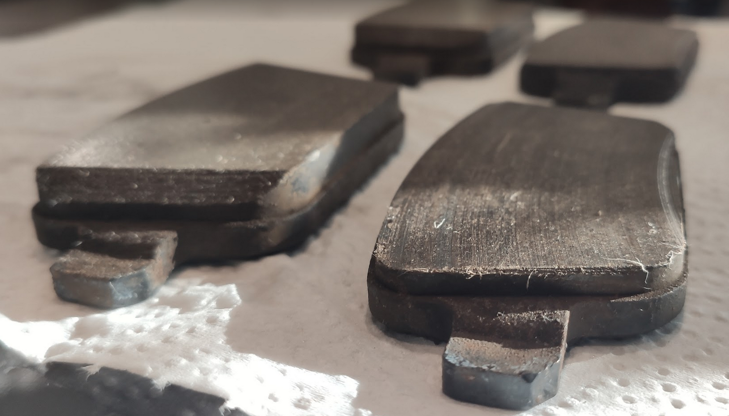 Die inneren Beläge sind fast überhaupt nicht abgenutzt, aber an beiden Rädern gleich.