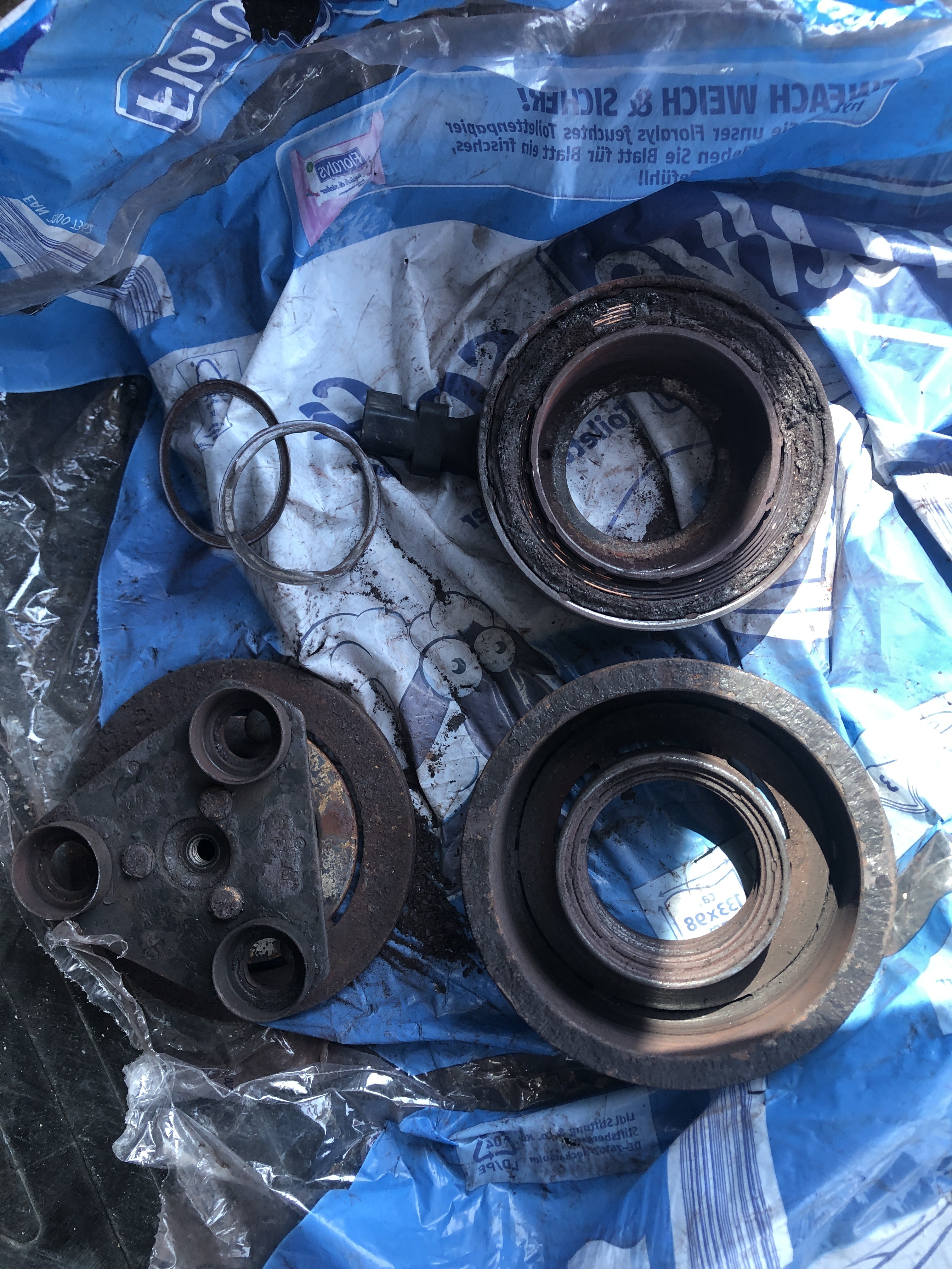 Ist wohl die Magnetkupplung. Die hat sich komplett zerlegt.