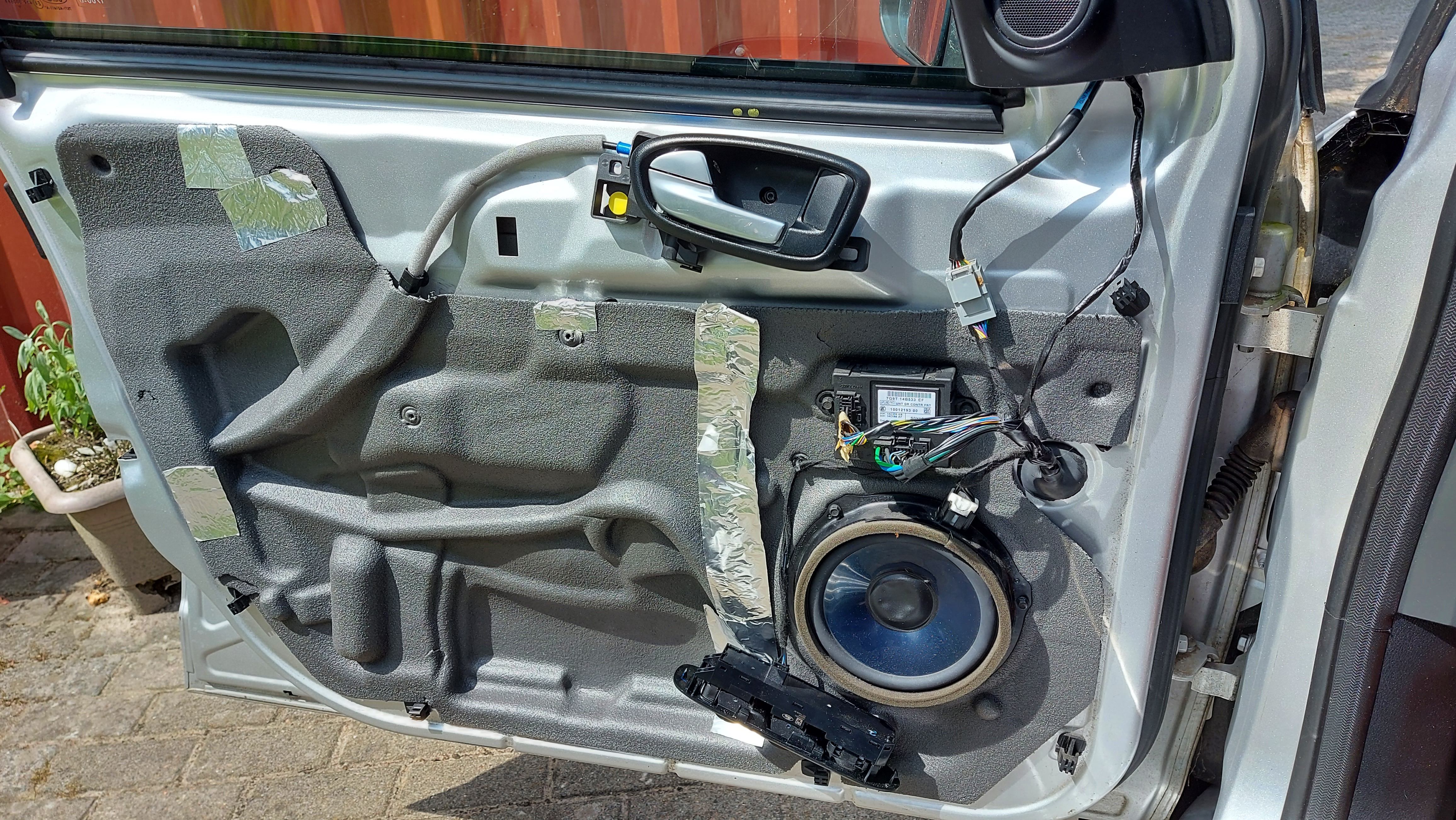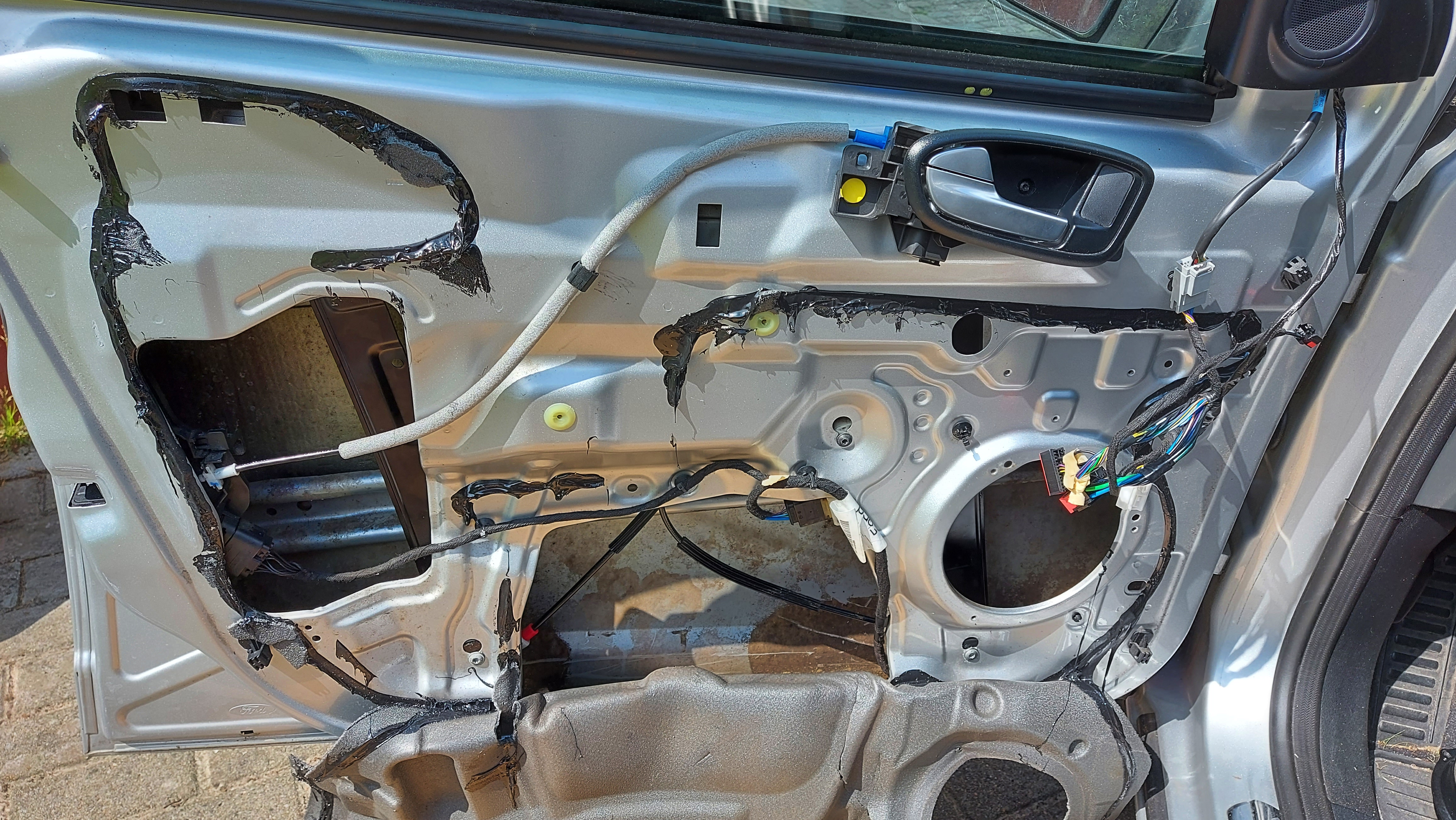 Danach die Türpappe nach oben wegziehen und nu sieht es dahinter so aus: